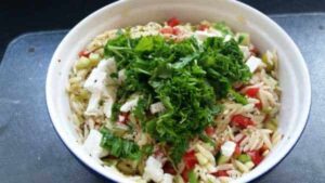 Kritharaki Salat mit Feta, die perfekte Grillbeilage