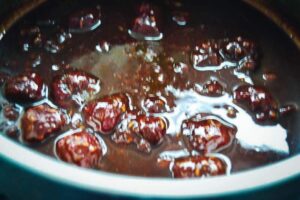 Den Kaninchenfond oder Hühnerfond in einem Topf erhitzen.
