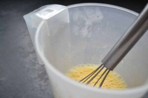 Buchweizenmehl , Eier , Zucker und Speisestärke abwiegen