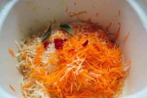 Die Möhren und Sellerie auf der feinen Reibe fein reiben