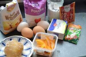 Die Zutaten bereitstellen, Zucker und das Mehl wiegen