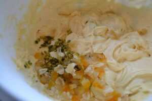 die gehackten Pistazien und die klein geschnittenen kandierten Orangen und Zitronenschale unterheben