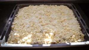 den restlichen Streuselteig über die Mohnmasse krümmeln