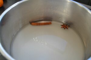 Wasser, Zucker, Zimtstange und Sternanis kochen
