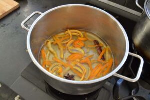 Orangenschale ca. 3 Minuten im Sirup kochen