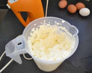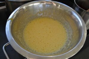 schaumig aufschlagen. Die Schüssel zum schnellen Abkühlen in einen Topf mit kaltem Wasser stellen und die abgekühlte