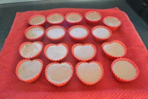 das Nougat Parfait in kleine Silikon Förmchen füllen und dann am besten über Nacht einfrieren