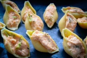 Nudeln mit Lachs gefüllte Muschelnudeln