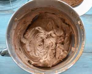 Die zimmerwarme Butter mit einem Mixer cremig rühren und nach und nach die Nougat Puddingcreme in die cremige Butter rühren. Super wichtig ist, damit Euch die Buttercreme nicht gerinnt, dass der Pudding und die Butter die gleiche Temperatur haben!