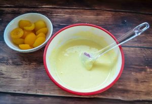 Als Erstes die Aprikosen gut abtropfen lassen. Die Butter mit dem Zucker schaumig rühren, bis die Masse hell und cremig ist. Das Ei hinzufügen und gut unterrühren. Anschließend den Quark, den Zitronenabrieb und das Puddingpulver dazugeben und alles zu einer glatten Masse vermengen.