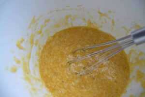 Den geriebenen Käse mit den frischen Eiern und dem Eigelb