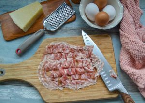 - 120 g Pancetta alternativ Guanciale, oder ganz milden Bacon