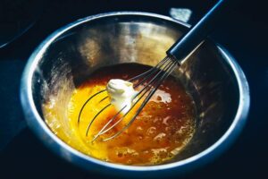 Das Ei 1-2 Minuten stocken lassen und dann mit einem Holzlöffel etwas hin und herschieben und rühren