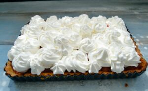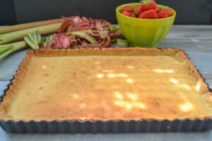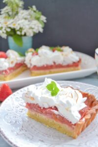 Gericht: Backen, Baiserkuchen, Dessert, Französisch, Frühlingsrezepte, Gut vorbereiten, Kuchen, Rhabarber