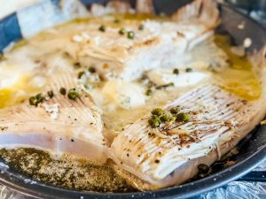 Rochenflügel mit Kapern Weißweinsauce