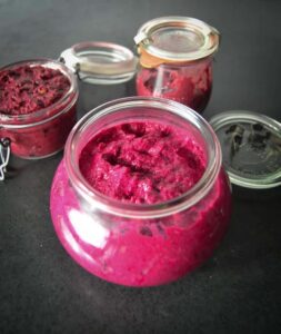 Rote Beete Aufstrich Rezept mit Feta, Schafskäse, Apfel, gerösteten Pinienkernen. Der Vegane ist mit Koriander und Walnüssen, beide Dips sind super lecker.