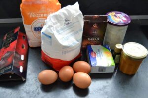 Alle Zutaten bereitstellen und abwiegen. Die Butter leicht erwärmen