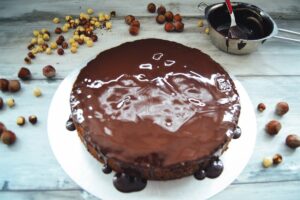 Saftiger Haselnusskuchen mit Schoko-Glasur