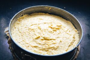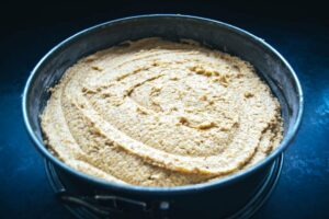 Eine Springform gut fetten und mit etwas Mehl aus stäuben.