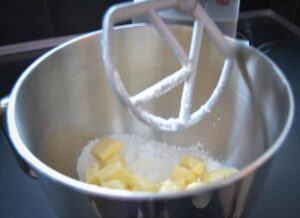 die Butter mit dem Puderzucker sehr gut verrühren bis sie hell cremig ist.