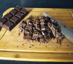 die geschmolzene Kuvertüre durchrühren und dann in die gut gesäuberte