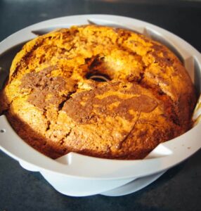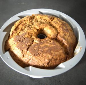 Den Kuchen bei 175 ℃ Ober- und Unterhitze ca. 50-60 Minuten backen, mit einem Holzstäbchen die Stäbchenprobe nach 50 Minuten machen und schauen, ob der Kuchen durchgebacken ist, da jeder Ofen anders backt, wenn man sich nicht sicher ist ihn einfach noch ein paar Minuten im ausgeschaltetem Ofen stehen lassen. Den Kuchen ein paar Stunden komplett auskühlen lassen.