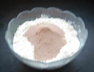 das Mehl, mit dem Backpulver und dem Cappuccinopulver mischen