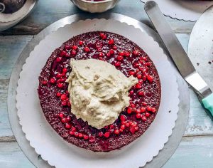 Auf den untersten Boden etwas Preiselbeerkompott verteilen