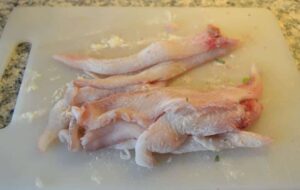 scharfes Messer was Du an der mittleren Gräte ansetzt und dann zum Rand die Filets schneidest. Wenn Du dies noch nie gemacht hast lasse dir die Seezungen lieber beim Fischhändler filetieren.