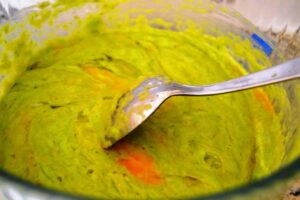 Den Spargel Brei mit den Eiern, Sahne, Speisestärke verrühren. Mit Muskat etwas Pfeffer und Meersalz würzen.