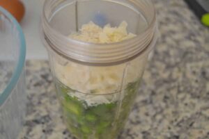 Die kleinen Spargel Stücke mit dem frisch geriebenem Parmesan in einem Mixer durch Mixen