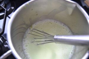 Den Pudding gut rühren und dabei lauwarm abkühlen lassen