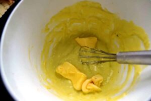 nun die Butter kräftig unter den Pistazien Pudding