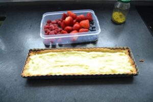 Tarte mit Beeren und Pudding