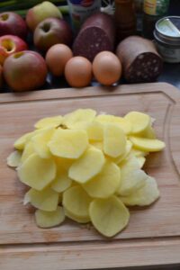 und die Kartoffeln in Scheiben schneiden