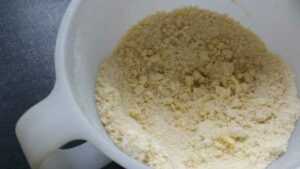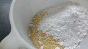 Das Mehl mit den geriebenen Mandeln und dem Puderzucker mischen