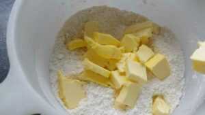 die kalte Butter in Stücken dazu geben