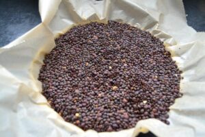 Den Tarteboden mit Backpapier abdecken und diesen dann mit Hülsenfrüchten beschweren . Den Tarteboden bei 180 Grad ca. 10 Minuten im vorgeheizten Ofen backen. Im Grundrezept ist dies alles genau beschrieben. Das Rezept reicht für eine 24/ 26 cm Tarteform