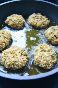 Die Bratlinge warm halten bis alle fertig gebraten sind.