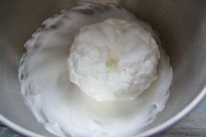 Die Eier trennen und das Eiweiß zu steifen Eischnee schlagen.