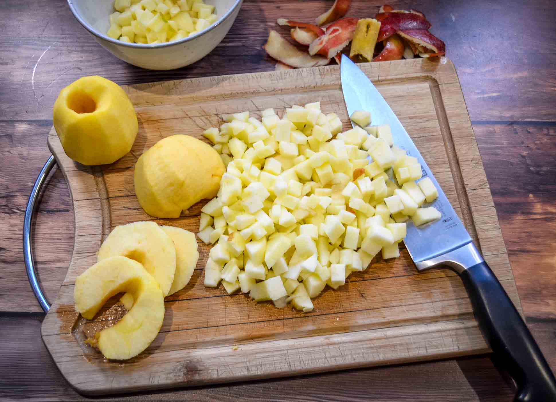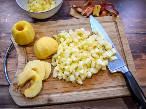 - 4 Äpfel mittelgroß, geschält, entkernt und in kleine Würfel geschnitten